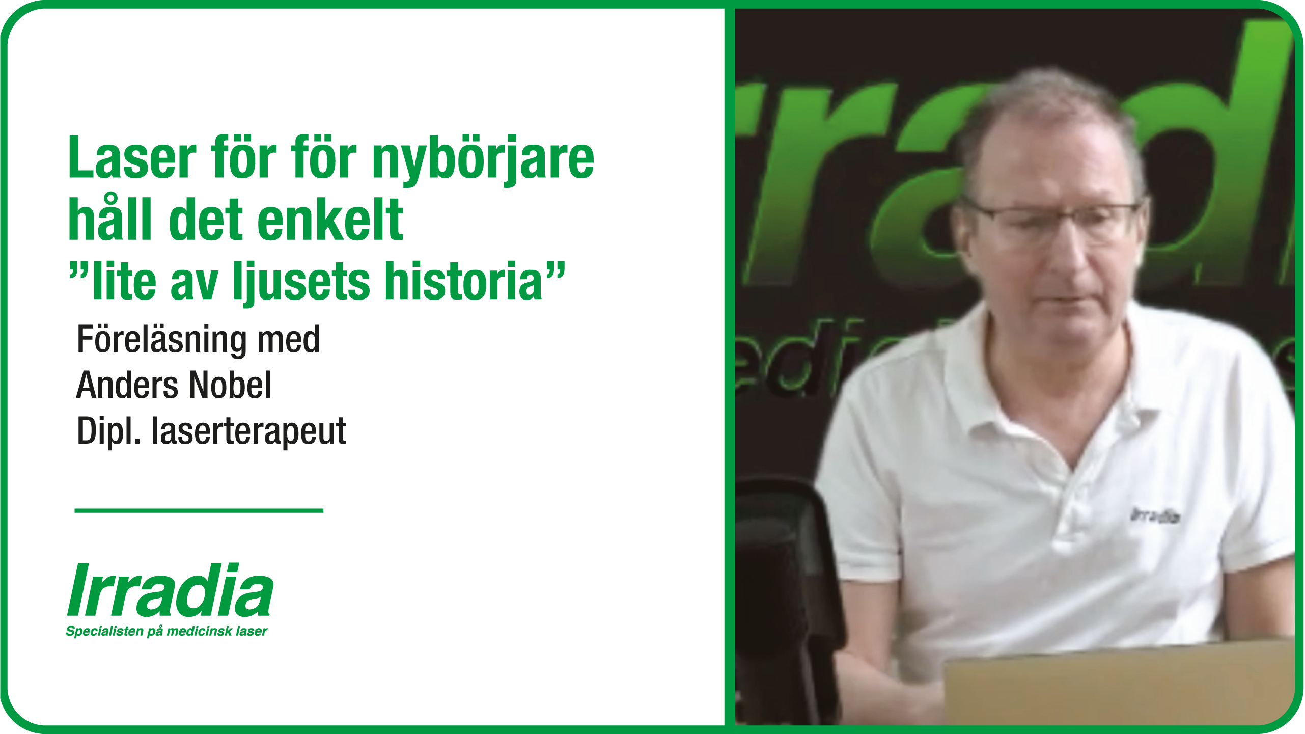 Genomgång av Irradias medicinska lasrarGenomgång av Irradias medicinska lasrar med Anna Mikaelsson, diplomerad laserterapeut